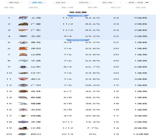 CBA最新排名!北京跌出前四,612混战,山东浙江连胜逐渐稳固!