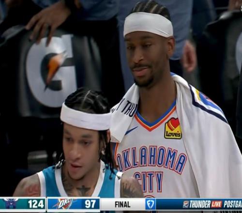 黄蜂数据,三球鲍尔16分2篮板2助攻,克尼佩尔23分5篮板5助攻,布里奇斯17分11篮板4助攻,布兰登米勒28分6篮板,塞克斯顿10分,迪亚巴特9分12篮板5助攻。全场比赛黄蜂抢了雷霆数据,亚历山大21中7,只拿到21分6助攻,在场净输20分;杰威16分4助攻,霍姆格伦15分6篮板,米切尔11分3篮板3抢断,多特5分4篮板。