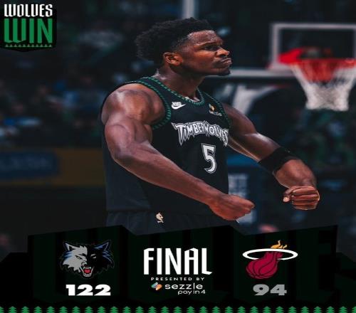北京时间1月7日,NBA常规赛森林狼主场对阵热火,希罗伤停11场后复出被安排出任替补,希罗此役达成生涯1000记三分里程碑。爱德华兹率领森林狼在开局落后9分情况下,逐步用团队攻势持续压制热火,并且末节扩大30+领先优势锁定胜局,最终森林狼122-94赛季双杀横扫热火收获3连胜。
