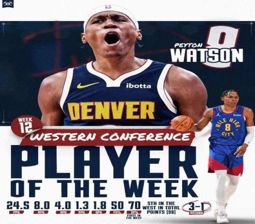 首先,我们透露一个不明显的小消息,在约基奇时代里,此前掘金仅有一次周最佳球员,来自于曾经的贾马尔·穆雷。而沃特森,则是穆雷之后的第二人了。