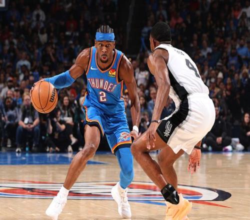 雷霆主场迎战马刺,雷霆少了多尔特、哈滕,马刺少了瓦塞尔,上半场比赛双方旗鼓相当,半场战罢雷霆领先3分,第三节雷霆单节赢了16分,第四节分差一度来到24分,最终雷霆大胜21分。亚历山大23中11得到34分5板5助4帽,杰伦15中9得到20分3助2断,马刺方面文班15中7得到17分7板,卡斯尔13中6(三分5中3)得到20分7板8助。